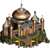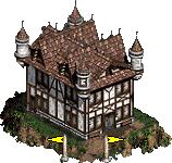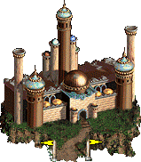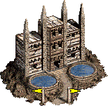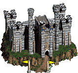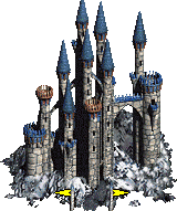 - 建有堡垒、大本营、城堡的城镇会有城墙,可由英雄进行守城战,配套防御设施包括箭塔和护城河。无城防的城镇被围攻时,会进入普通战场。